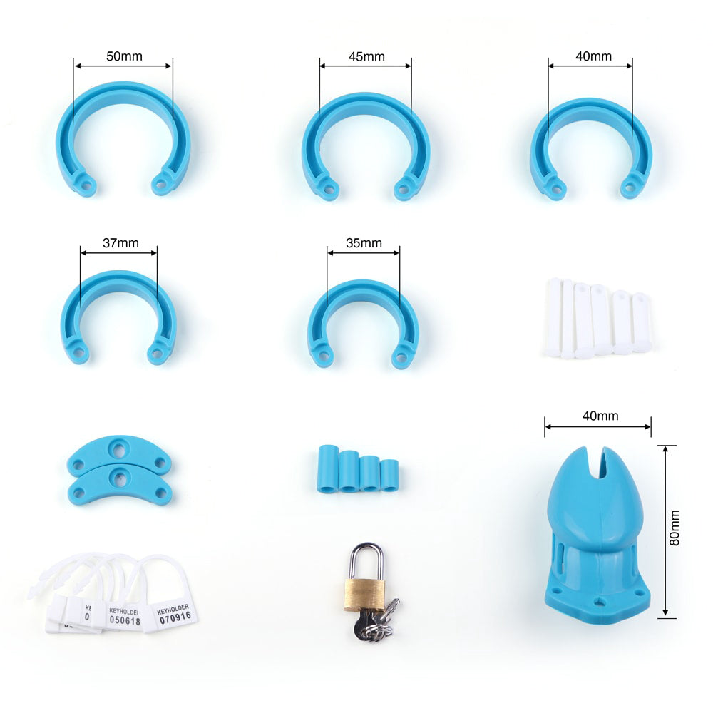 This plastic cage will restrict your penis, ensuring you won't get the climax you desire, or even an erection, to say the least. There are three rings included, so you can choose the one that fits you best. You can pee with it on as it has a hole for that purpose. This set includes a padlock, a key, and spare disposable locks.