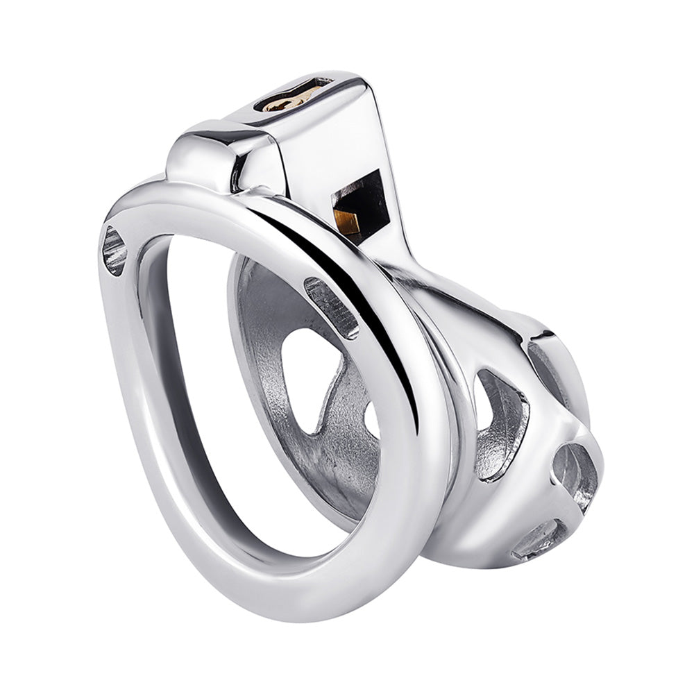 A lovingly crafted device with everyday wear at the forefront of the design, the Enhanced Restriction Cage is a great addition to any chastity collection. Featuring an ergonomic steel body with carefully placed holes, the cage provides both firm restriction and long lasting comfort.
