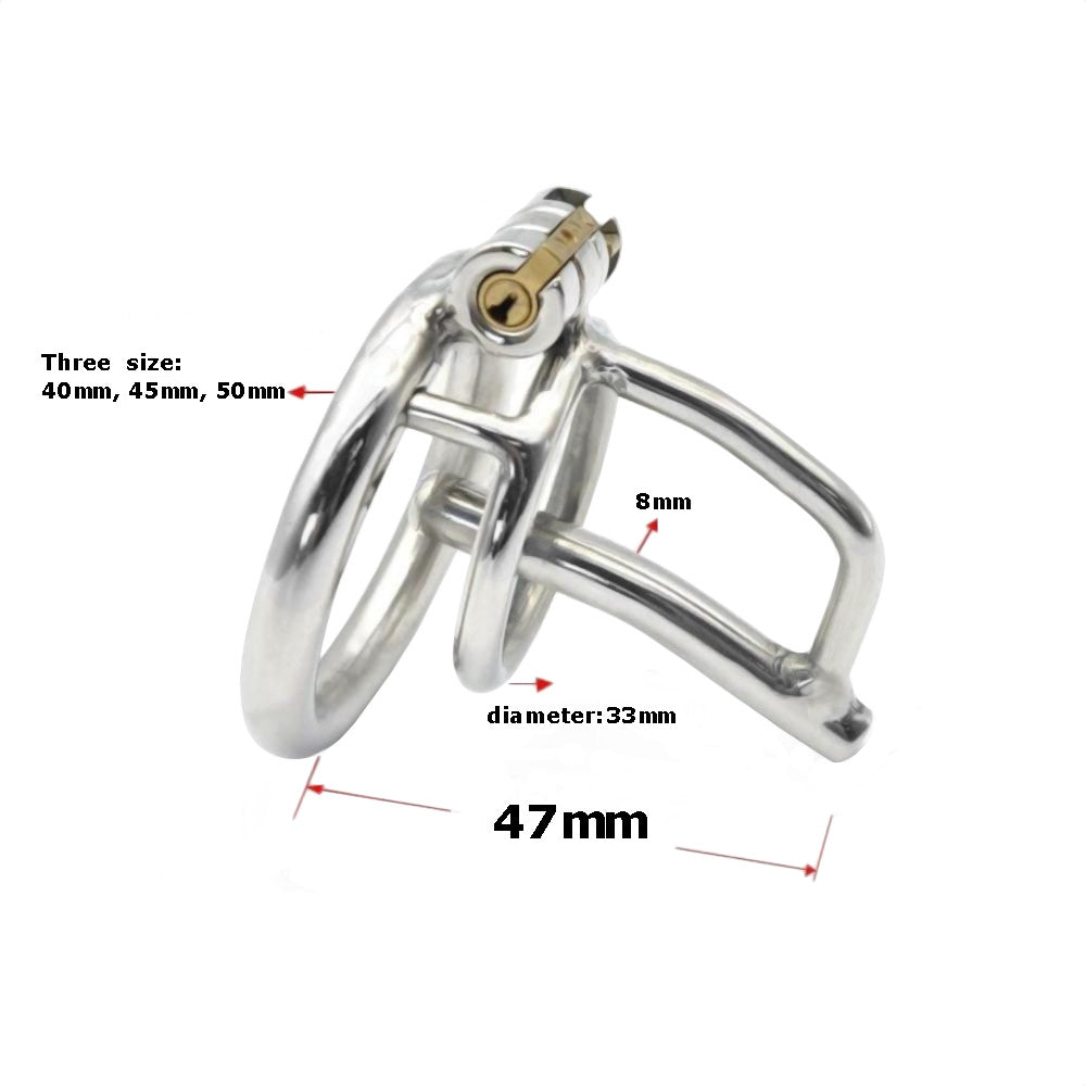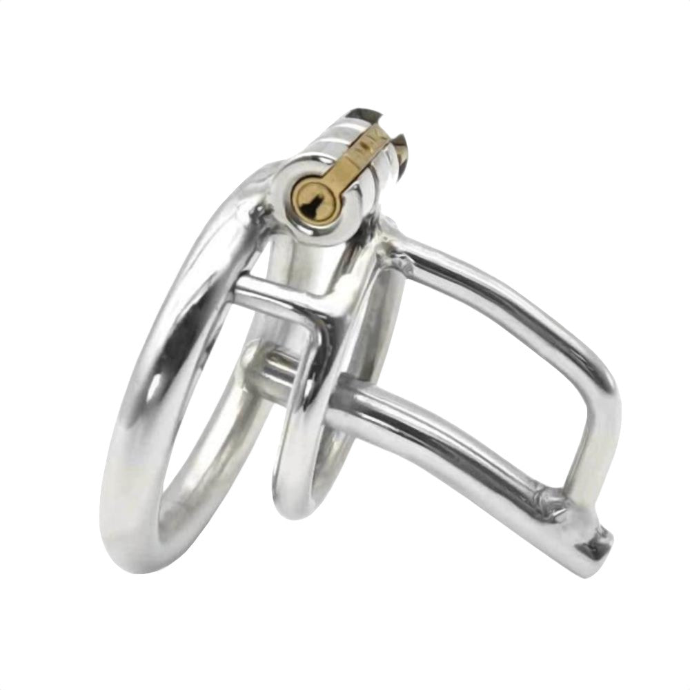 Shunning the traditional tube design, this metal “frame” holds your manhood in place with just a ring and a urethral rod. While you’ll feel any touch against your skin, you’ll struggle helplessly against the firm hold of the cage.